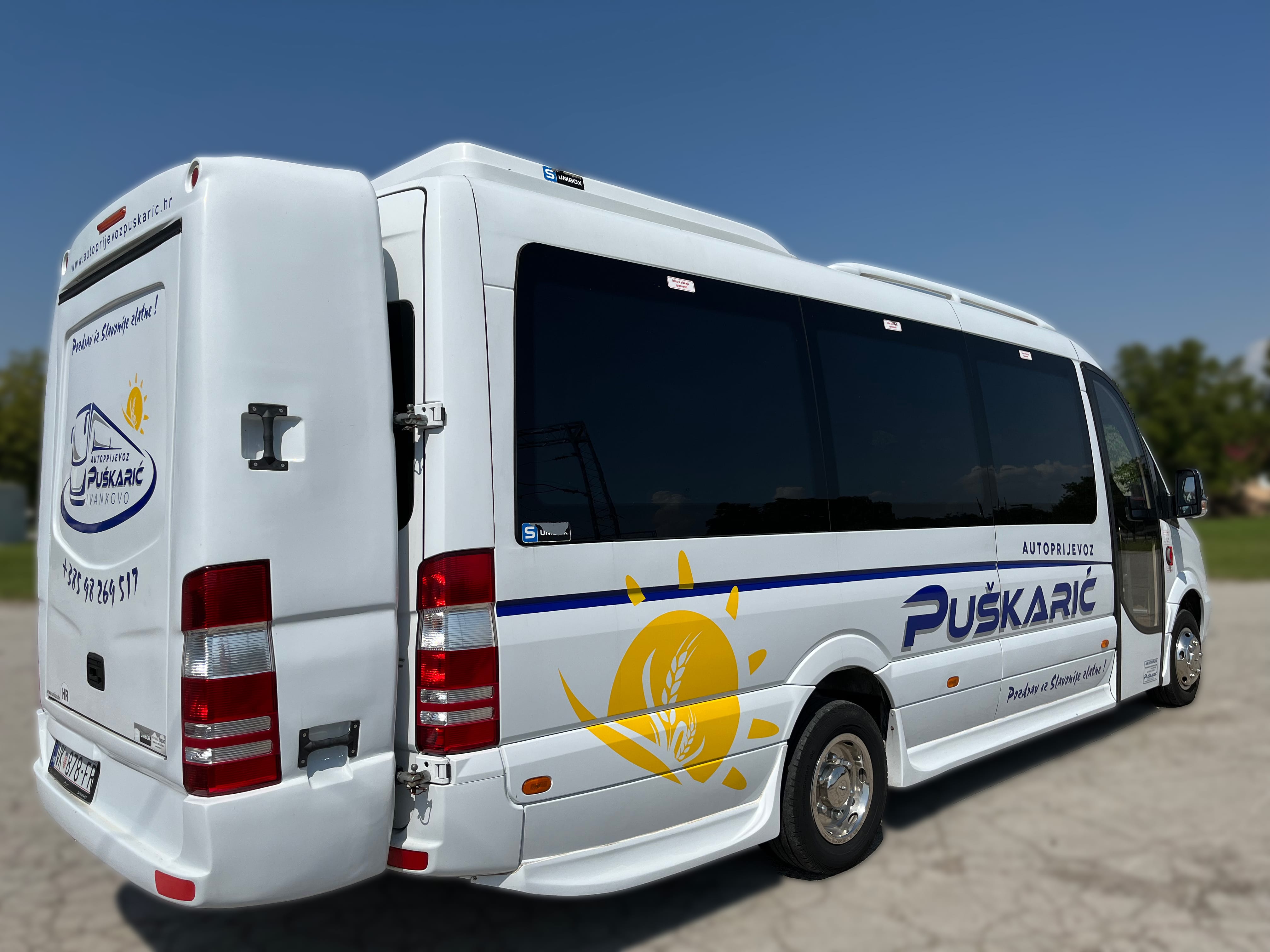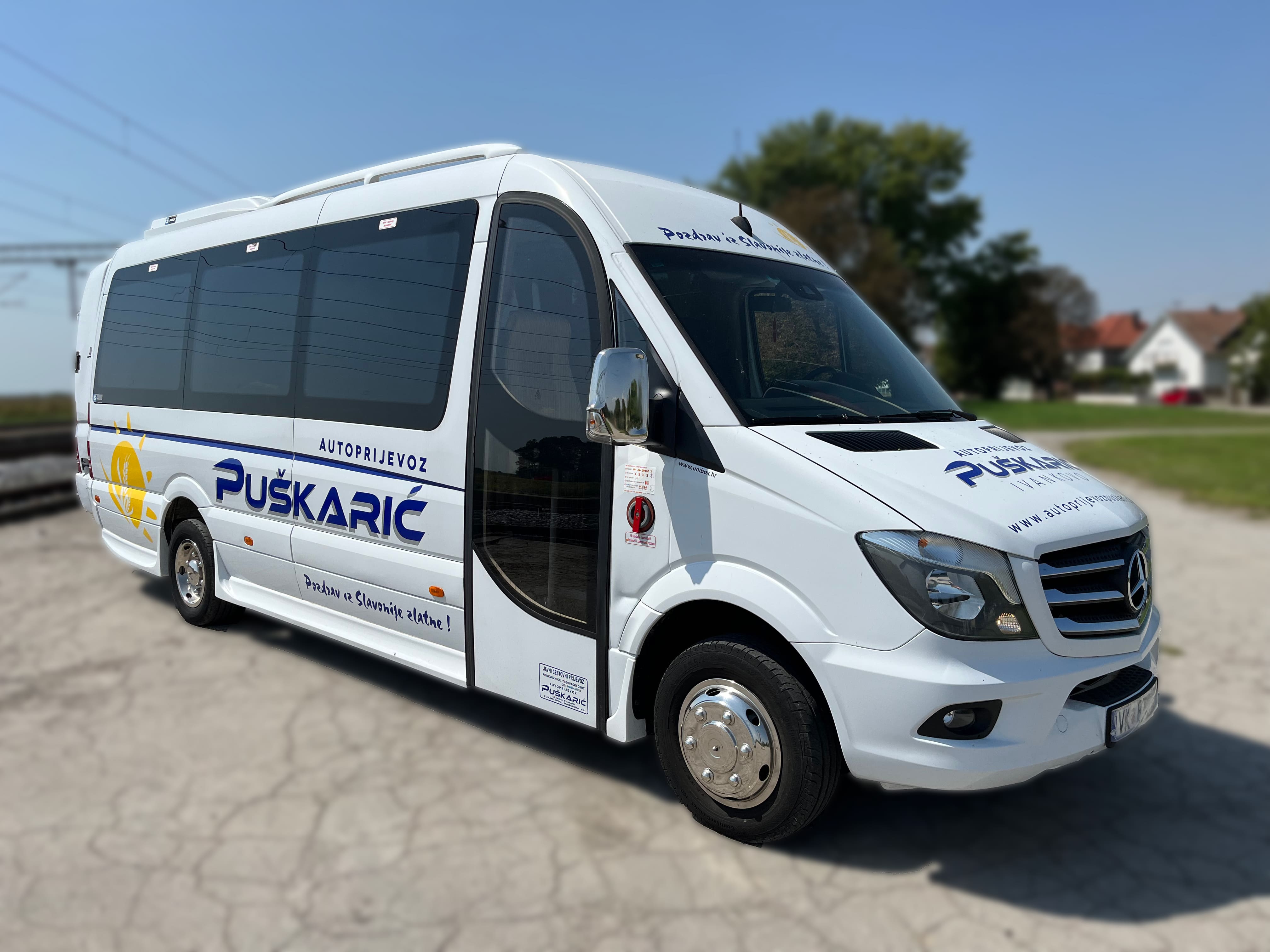 Mercedes Benz SprinterVIP Liner, 20 sjedala, turistička oprema, TV, DVD, klima, mikrofon, zatamnjena stakla, prošireni prtljažni prostor, 2016. god.